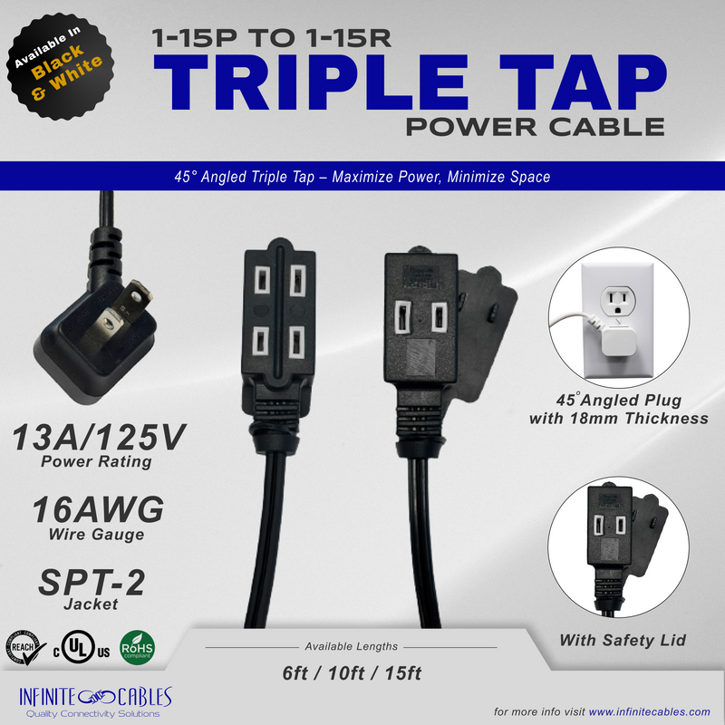 6 Outlet 900J Surge Protector - 45 Degree Angle 5-15P Plug – Circuit Breaker - Black