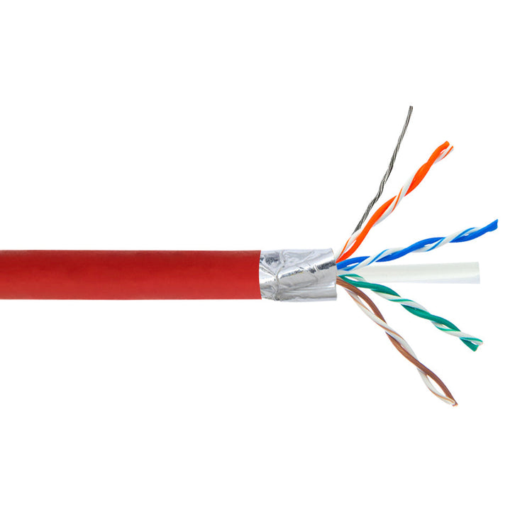 This bulk riser rated Cat6 cable is 1000 feet in length and consists of 4 pairs of 24AWG stranded wires with an overall foil shield. It is typically used to manufacture Cat6 shielded patch cables and terminated with shielded RJ45 plugs.