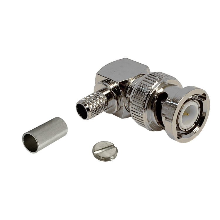 This BNC male right angle crimp connector is meant to be terminated on LMR-240 bulk cable.