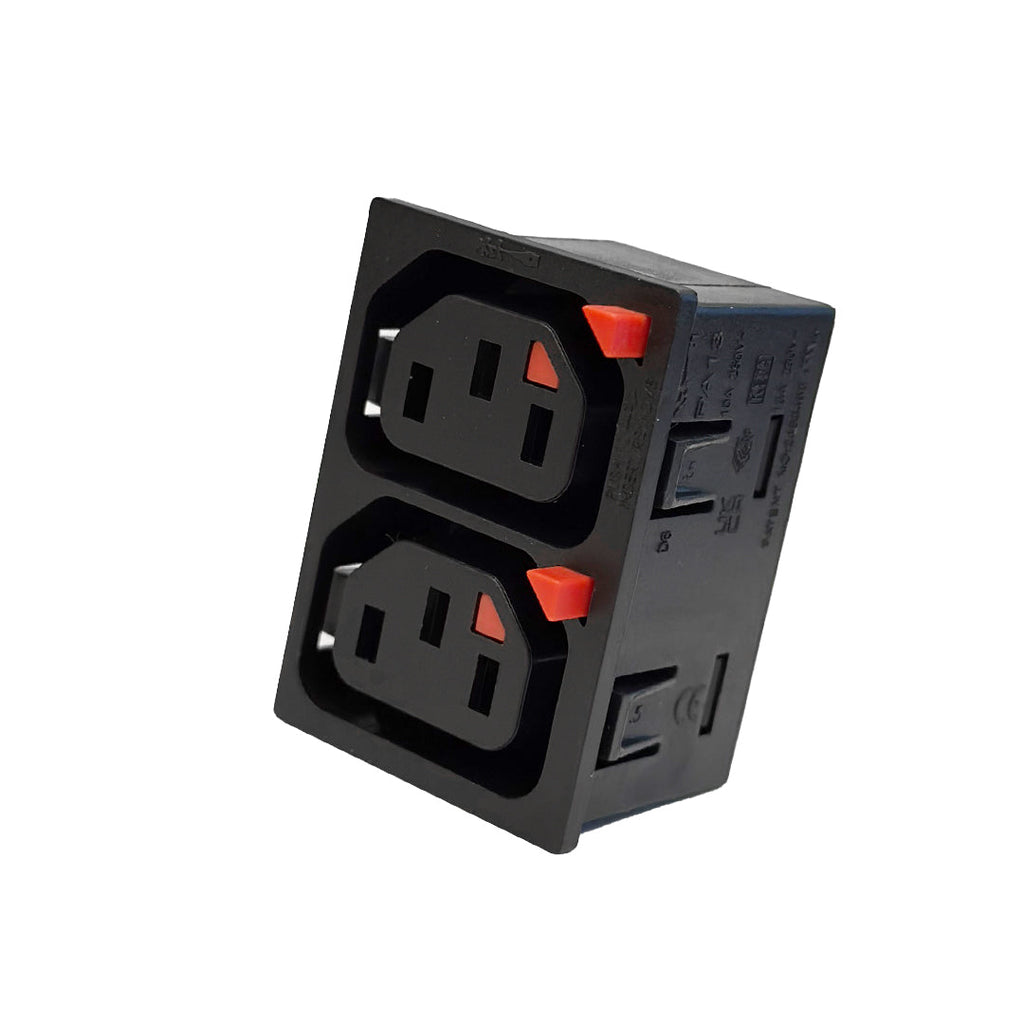 This power outlet has a locking female C13 connector on one side and a solder/quick connect terminal on the other. This outlet is typically used to provide maximum retention when connecting a C14 power cable to the locking C13 power outlet. Compatible with any C14 cable.