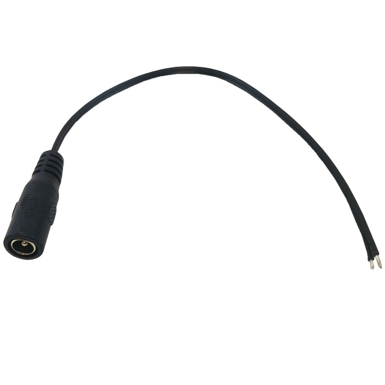 This 8 inch DC power pigtail cable has a 2.1mm x 5.5mm female on one end and is un-terminated on the other. It is typically used to terminate DC power cable.