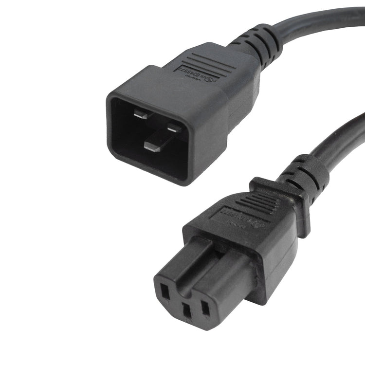 This power cord consists of a C20 male on one end and a C15 female on the other end. It is typically used to connect a server to a PDU in a data center environment. These cables are constructed with UL mandated inner plastic frame molds to enhance terminal alignment and produce a high quality connector. Premium quality connectors are used to ensure a secure fit. Each assembly is 100% continuity tested and 100% HVT (High Voltage) tested and inspected before shipping.