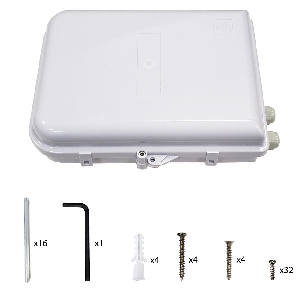 Indoor/Outdoor 16-Port Plastic Fiber Optic Wall Mount Terminal Box White
