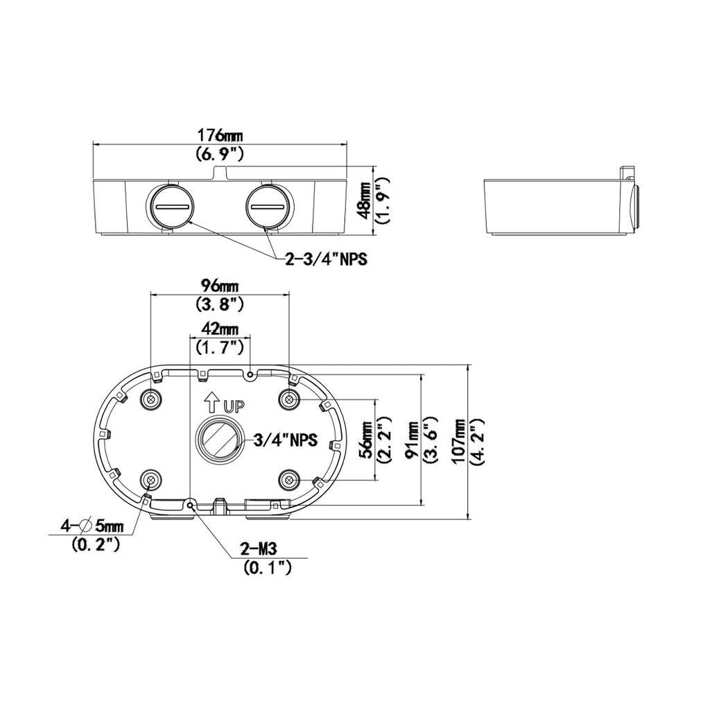 This junction box mounting bracket is designed to mount dual IP dome camera. It has side and bottom inlets for easier installation. It is constructed of treated aluminum alloy material for better protection against the elements in outdoor applications.