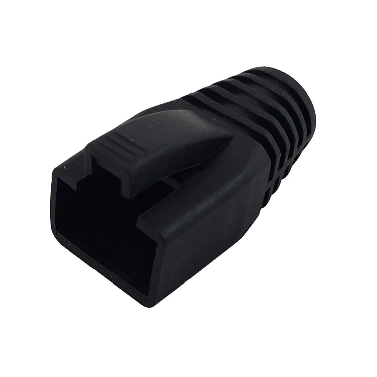 The RJ45 molded style boots are designed to fit most Cat6a and Cat7 cables. This style of boot slides over the crimped RJ45 plug. The protective hood prevents the RJ45 release clip from snagging.