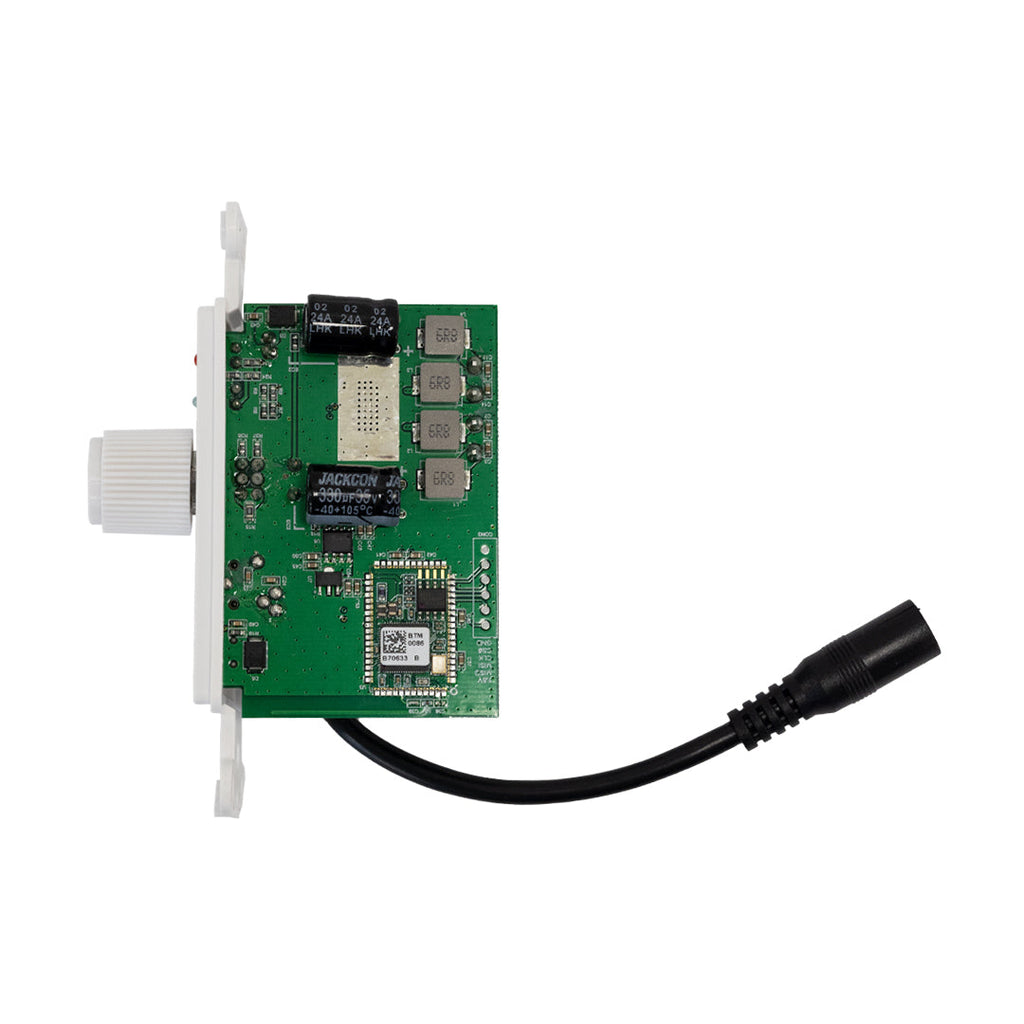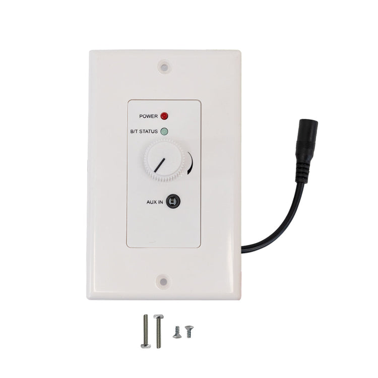 This wall plate kit consists of a Decora wall plate, amplifier and power supply. It is typically used to connect to a pair of in-wall/in-ceiling/wall-mounted speakers and control them via Bluetooth or plugging directly into them using a 3.5mm cable. They are typically used in small spaces such as bedrooms, bathrooms, garages or backyards.